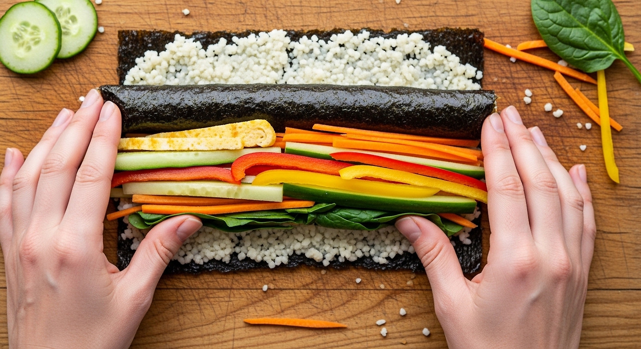 밥을 넣지 않아도 속이 꽉 찬 느낌이 들고, 한 입 베어 물었을 때 아삭한 채소의 식감이 입안 가득 퍼집니다.