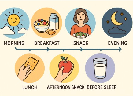 하루 총량 목표를 세우면 선택이 쉬워집니다. 사과 1개, 샐러드 한 접시, 통곡물 1 공기, 견과 한 줌이면 금방 채워집니다.